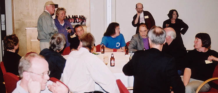Procol Harum chat to fans at the table … Matt, Geoff and Matthew in particular …while Gary talks with Titti in the background. |