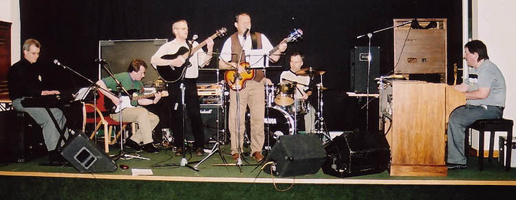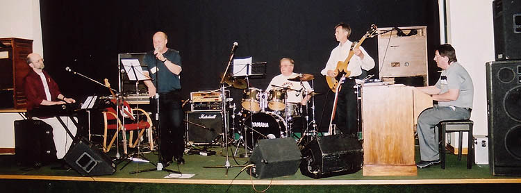 The Palers' Band in action: Roland, Steinar, Jens, Dag and Gunnar. Good view of the two-Leslie setup as well! |