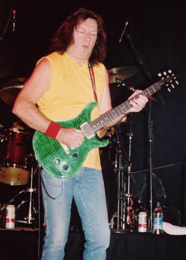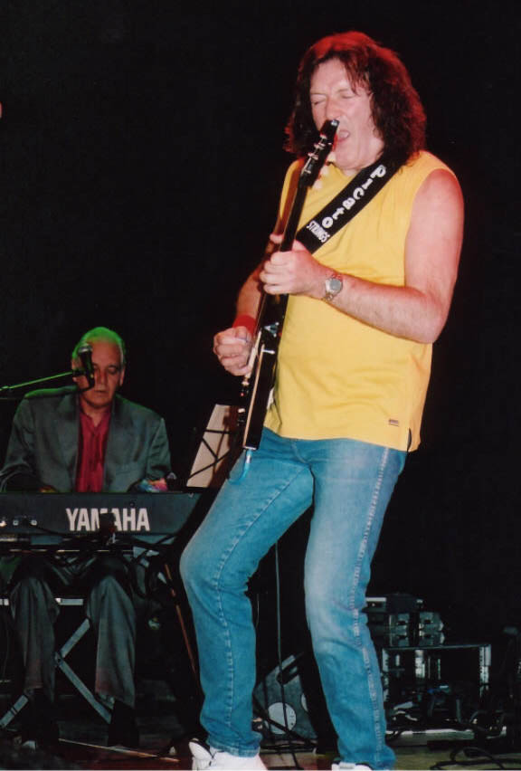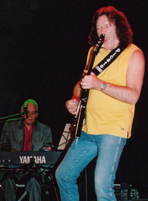 This page contains small versions of some very good images of Procol Harum in performance at Kristiansand. Please click on each picture, in order to see all the detail in the full-sized picture Right, Gary takes a solo … the stand has words on it, not music |