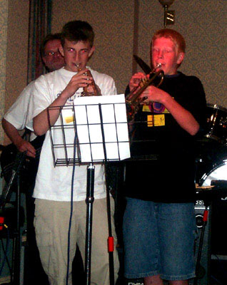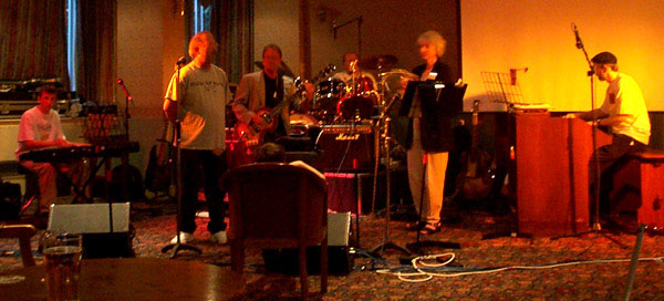 The Palers' Band, wandering through the garden fence ... Leif-Otto on bass, Peter Clare on piano ... |