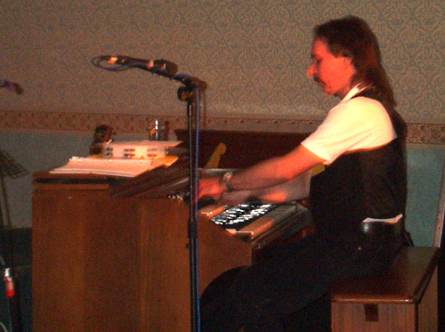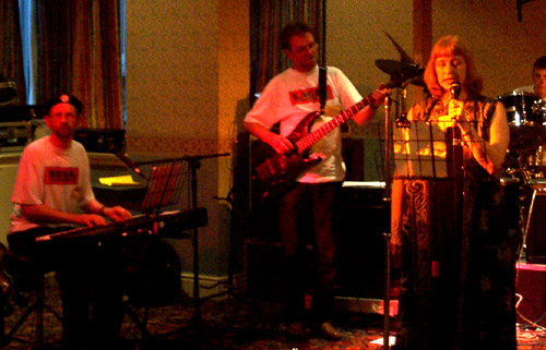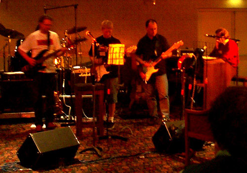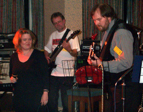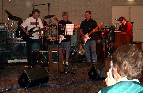 Richard takes a lead break, evidently enjoyed by Lou ... Martin attends to his bass |