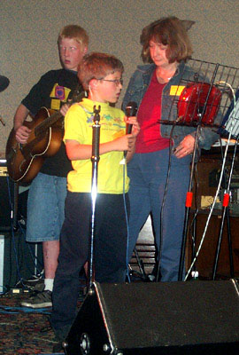 Nicholas Clare plucks some acoustic guitar during Magdalene (My Regal Zonophone) while brother Gummo and mother Nicky stand by for backing-vocal duties. |