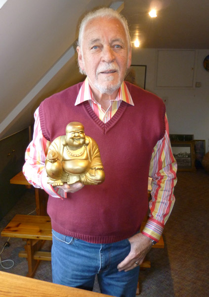 Gary Brooker with 'fat old Buddha'. He looks sorry to be parting with this delightful item