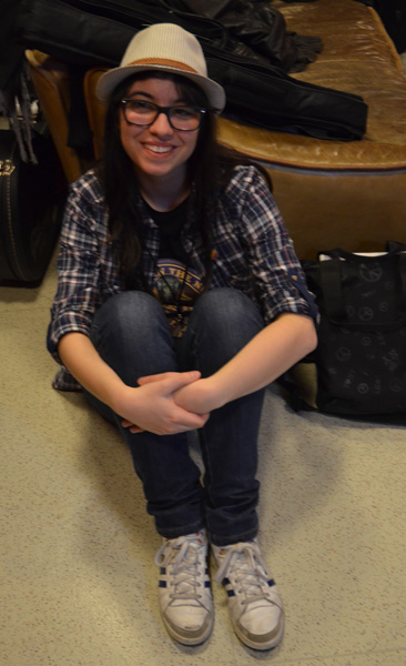 Backstage, the very dapper Jonas Söderström: a matching ensemble with tie, Roland's guitar and walls