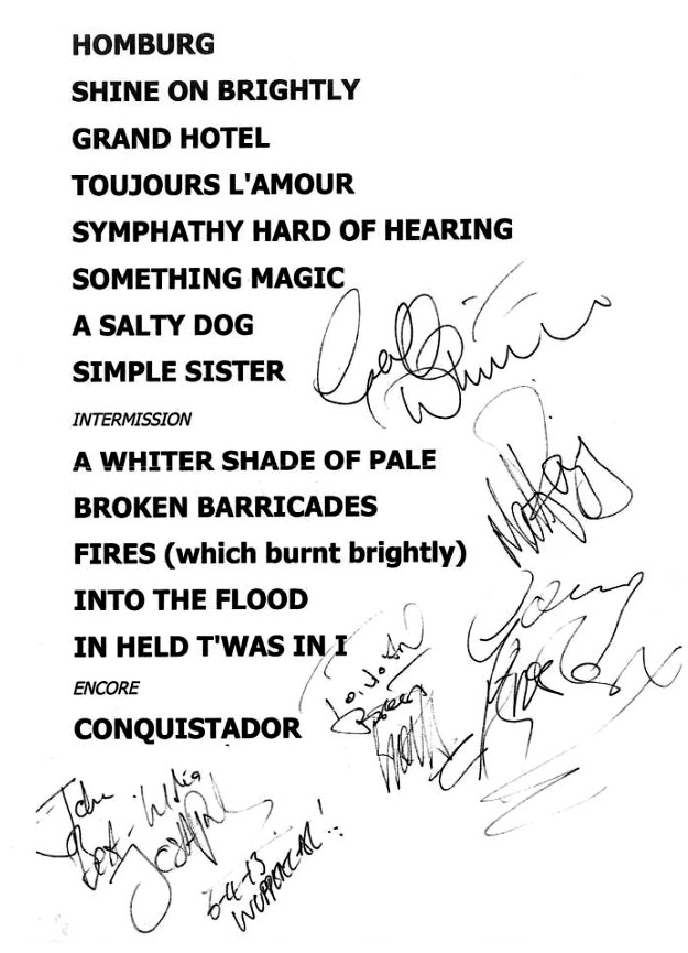 | 14 (18) | songs altogether: | 1 | From Procol Harum | 2 (6) | from Shine on Brightly |