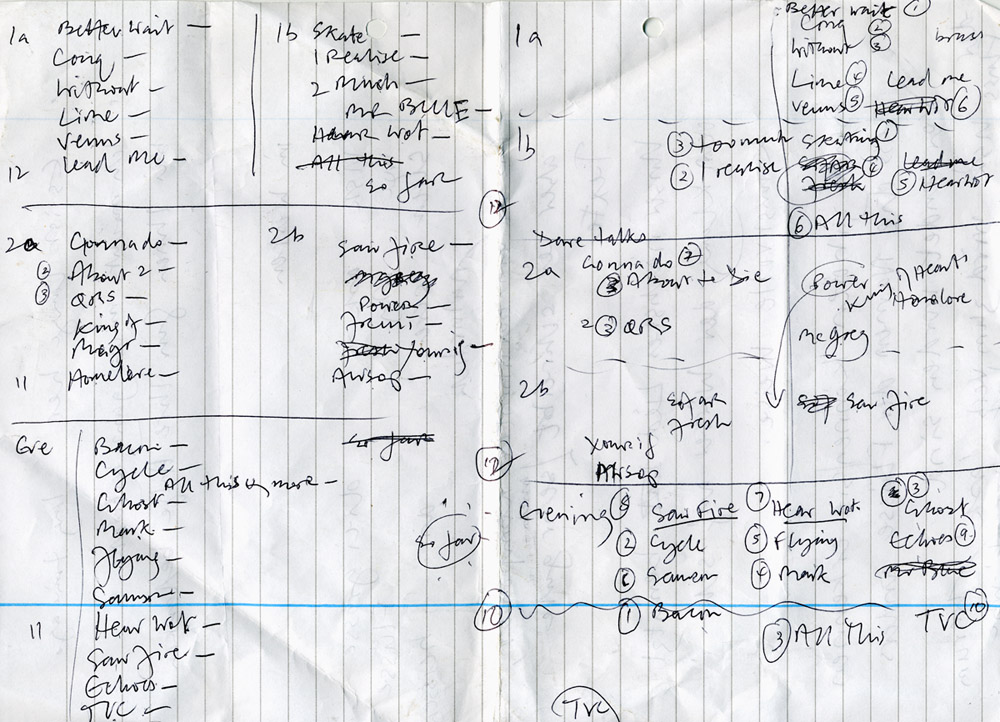At least one song from every studio album by Procol Harum, Gary Brooker, Keith Reid and Dave Ball: not bad going for thirty players, four days' rehearsal, and a day of technical fixing. Repent Walpurgis was neither planned nor practised ... thanks, Geoff! Finalisation of song-order ... scan here |