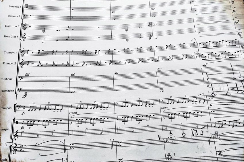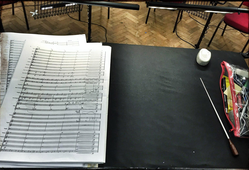 The choir sit waiting; David Firman opens a bottle; a double-bass waits in its white case