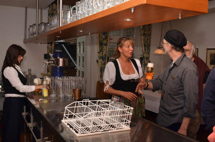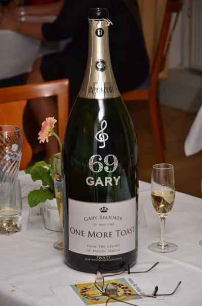 At the bar in the suite of rooms we hired for Gary Brooker's birthday party: Roland from BtP in conversation with Gaby, our head waitress