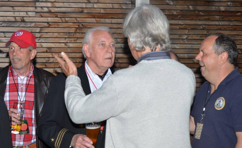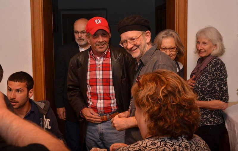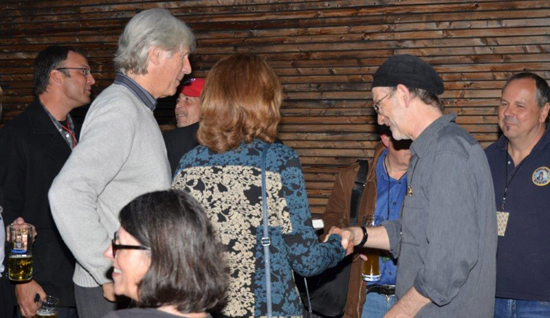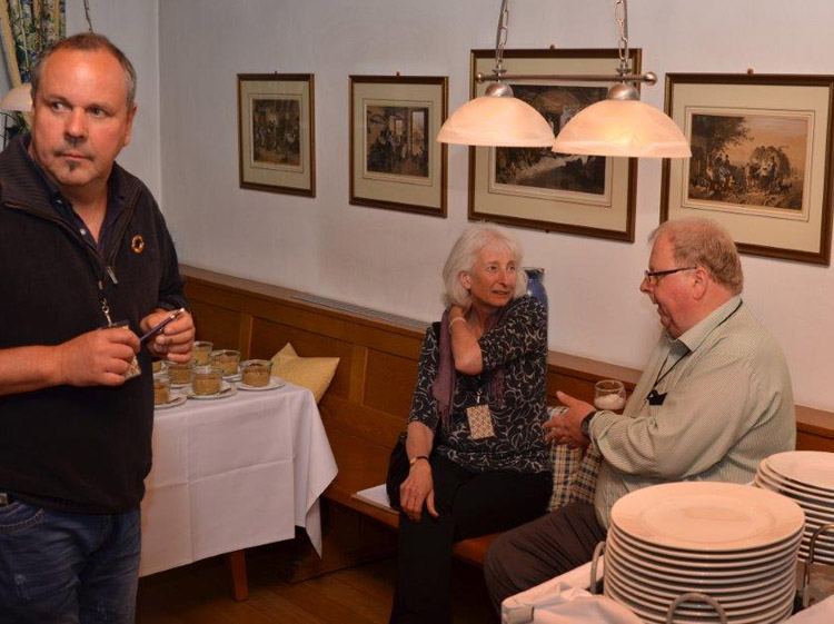 Roland apparently shaking hands with Steffi, wife and now biographer of Eberhard Schoener (also visible, Matt Pegg, and Amanda Hysted from Australia)