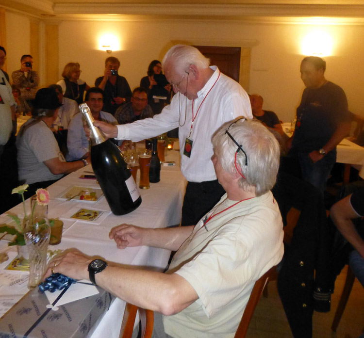 Gary with the Methuselah of champagne brought from Rome by Stefano and Andrea