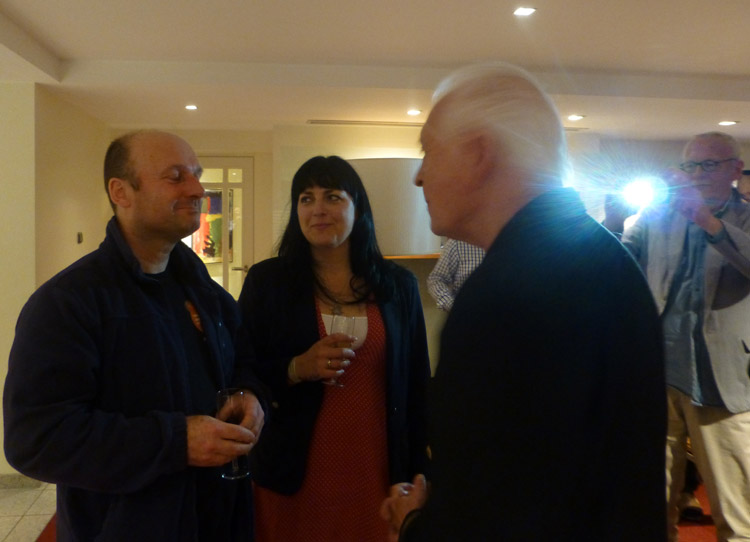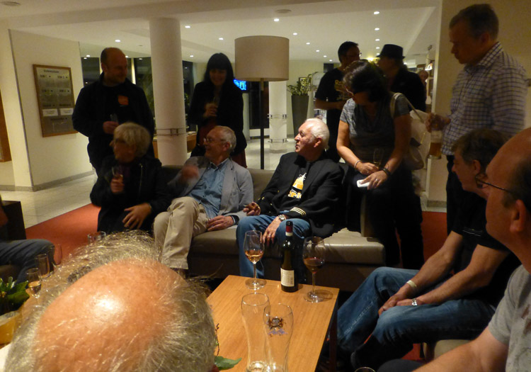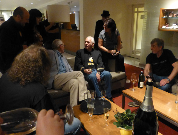 A crowd of Palers and Procols doing its best to stay quiet while drinking the birthday champagne