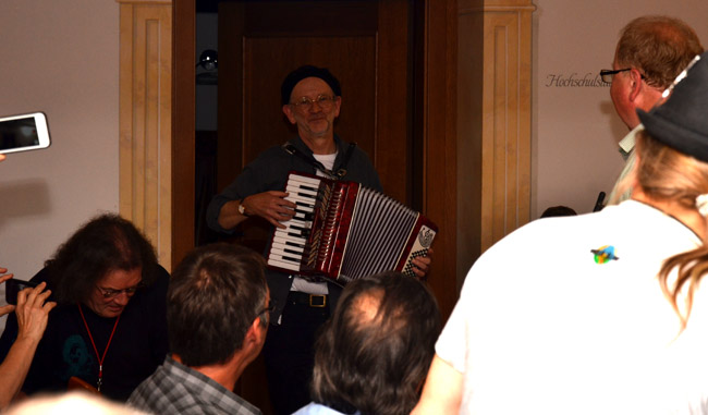 Roland delivering his own encomium, and making a rather strange face in the process. Jens rests his black eyes in the background