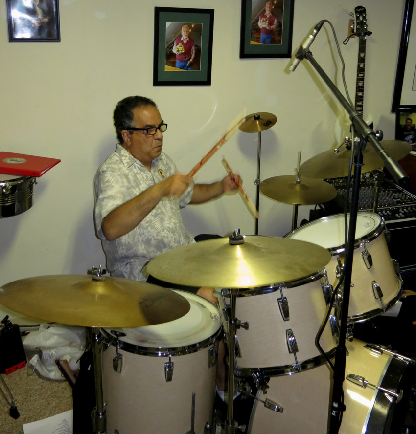 play drums during Kenny's guitar solo, then resumed his place at the mic to finish