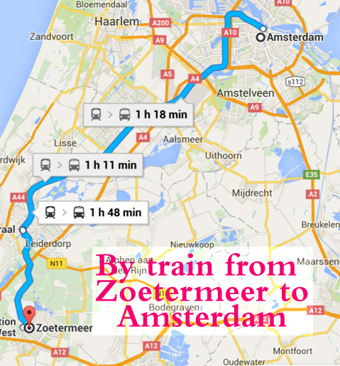 The centre of the Amsterdam is an easy 70-minute train-ride from Zoetermeer (diagram, left, below), so it makes good sense to use the train for exploring the many. famous delights of the capital while enjoying the inexpensive accommodation of the Basecamp Hotel for a few days either side of the Convention. For those who will hire a car at the airport, it's a 30 minute drive to Basecamp Hotel, as the second diagram below shows.