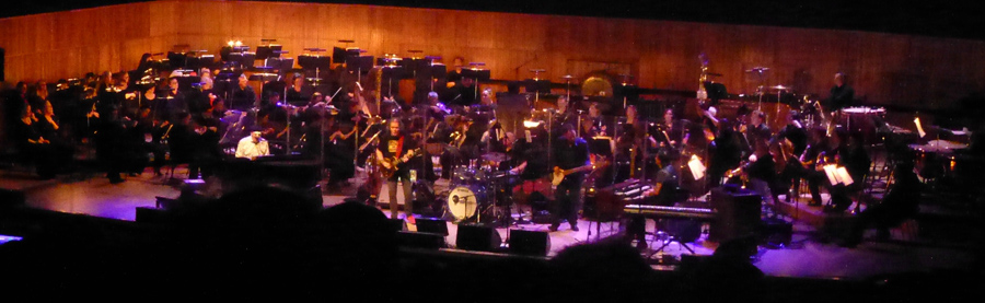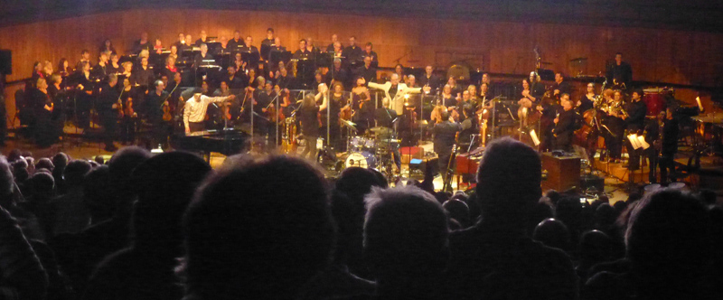 Righto – what about the music, you ask! Well here I must plead not insanity, but lack of light, which might mean this report misses the illuminating quality I was hoping to share with those not in London for the gig. It was pitch black and I could not see what I was doing – my notes ended up a total scrawl from start to finish. Fortunately I can still remember much of what happened (and indeed I’m a veteran of more than ten orchestral evenings with the band). And just to get all the excuses over in one go, my pictures were taken from the back of the auditorium with a strict photo embargo in force ... so they are not very clear either! Incidentally a guy just in front of us had a harness with microphones on each shoulder recording the event (undetected) ... I’m not sure if he had a GoPro camera as well!