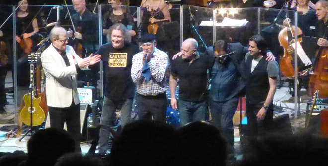 This much-anticipated start to Procol Harum’s fiftieth Jubilee Year turned out to be considerably more eventful than anyone could possibly have foreseen. A sold-out concert with symphony orchestra and choir at one of London’s most celebrated venues (near the Jubilee Gardens and Jubilee Bridge) promised much, but not the drama which unfolded at the interval. Gary Brooker went down in a heap and stayed down for quite some time – and no-one (other than those close to the scene, who saw what happened) was really sure if he had suffered a medical emergency, or some sort of fall. He was helped from the hall and it was perhaps half an hour before we had the announcement that the show would go on after an extended interval (45-50 minutes). I was sitting way far back and did not see the crucial moment, but I was sitting next to his cousin, a delightful lady who did not seem too concerned: I think she regarded Gary as indestructible! I was told it was a real 'sack of tatties' fall (a Scottish expression), not some Norman Wisdom pratfall.