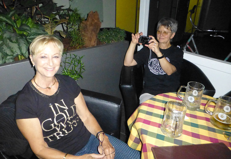 Uta with her sister Barbara. Note the contrasting tee-shirts!