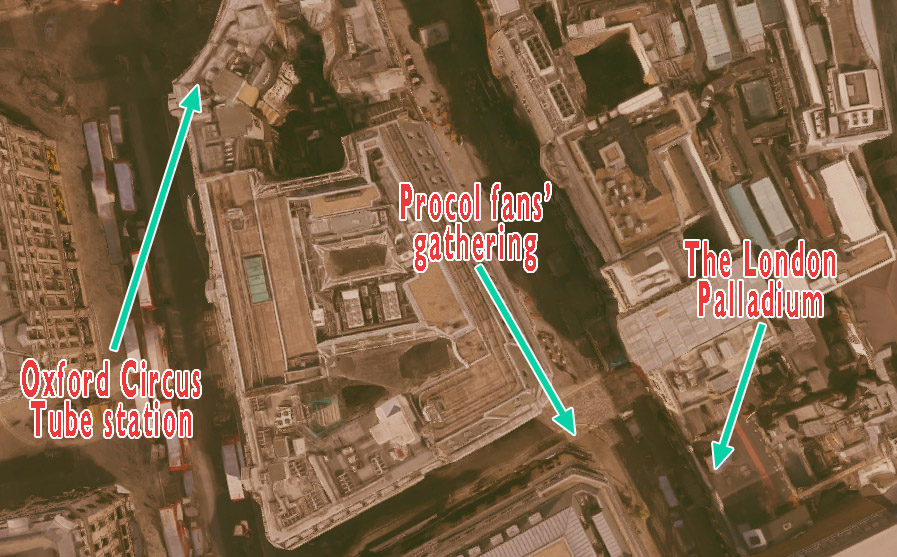 If you'd like to eat/drink, with fellow-fans from different countries, at 7.30 on Monday 8 October, please send an e-mail, reserving your place (s), to webmaster@procolharum.com (at the restaurant we'll also have signed and dedicated copies of The Crowd Called out for More, available from the author. These won't be for sale inside the Palladium)