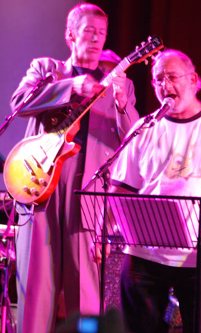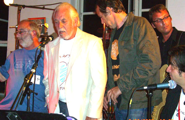 One-Eye performing Whaling Stories on stage with the Procols | On tour with the Procols | Jamming in Southend with the present author | Glowingly reading his Certificate from the band