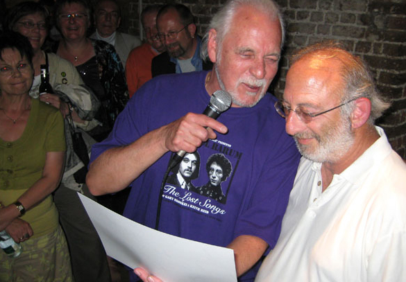 Yet he did manage to spend quality time in some parts. I remember his reverence when we visited the synagogue in Budapest (July 2004), and read the barbaric history of the WW2 ghetto there. We’d travelled to Hungary for a Procol concert, which fell through thanks to promoter incompetence. With characteristic chutzpah One-Eye held a replacement recital, a full programme of Procol rarities played through his portable hifi system at the very time and place where the live band had been scheduled. His audience was Linda, Mrs One-Eye, some pigeons, and me, sitting enthralled among the cobbles of Lion Square. Earlier he’d bought a camera, by comic, convoluted mime, in a shop where no English was spoken (and he had no Hungarian!). Later we interrupted our Danube cruise, hiring a kind of bicycle-based four-saddled jalopy to explore Margaret Island. Pat certainly contributed the lioness’s share of the Edelist pedalling. One-Eye’s outrage, when I claimed we could have hired the motorised version for just one dollar more, was unforgettable … as was his explosion of mirth when he realised I was teasing. A man who can laugh at himself – as he did again in Helsinki (July 2009) when, acting out ‘the waiter brought a tray’, he became engulfed in a runaway cloudberry sorbet – is a good man.