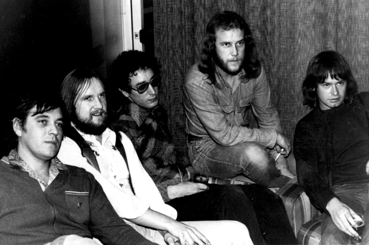 A relaxed moment for Procol: Brooker, Grabham, Reid, Cartwright, Copping
