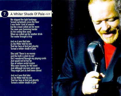 Standing in a dress quite similar to Procol's on the Grand Hotel sleeve, 52-year old singer and bass player Bamse (aka Flemming Jørgensen: 'Bamse' means Teddy-Bear!) was seen singing that song. Today (7 October 1999), his new album Stand By Me is published – thus including the first Danish cover of the song.
