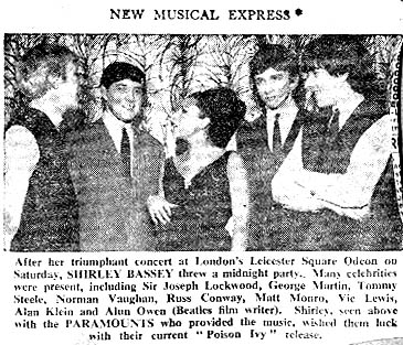 This clipping is undated in the scrapbook, but may confidently be assigned to NME, 10 January 1964: there's more NME Paramounts coverage, including the full text of this clipping, here (RC) |