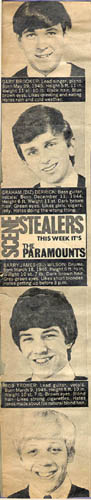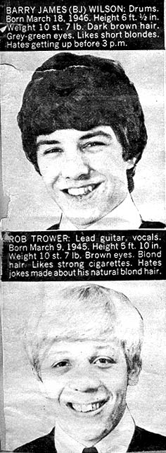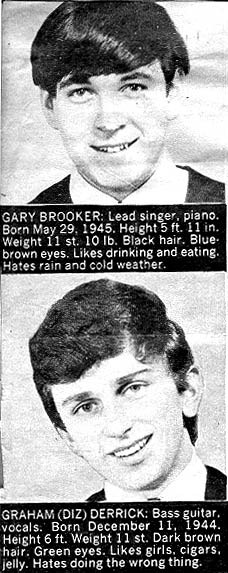 If you follow various clippings of this kind, you notice that Gary's eyes are gradually changing from 'blue' to 'blue-brown'; by the time he is a Procol, they're 'patchwork'! The Trower details here are ironic too: they're starting to play games with the press, methinks. (RC)