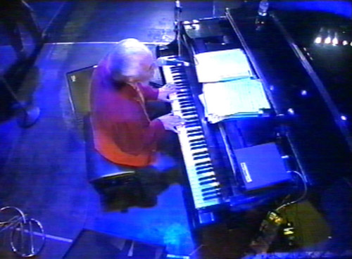 During A Whiter Shade of Pale Geoff doesn't seem to play much, but Simon Townsend sings enthusiastically off mike; Gary unusually sings the phrase 'whiter shade of pale' (no 'a') in soul-man style over the play-out. Needless to say the AWSoP arrangement was nowhere near as good as Mathias Weisz's. It's a very well-made film both in terms of sound and visual mix; some dire crap on it though. Gary throws something very small into the crowd when he waves goodbye: of the magnitude of a 50p or a piece of chalk. |