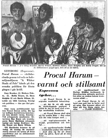 Procol did play in Stockholm in 1967 too - on the first of September. The Daily News was still not pleased ...