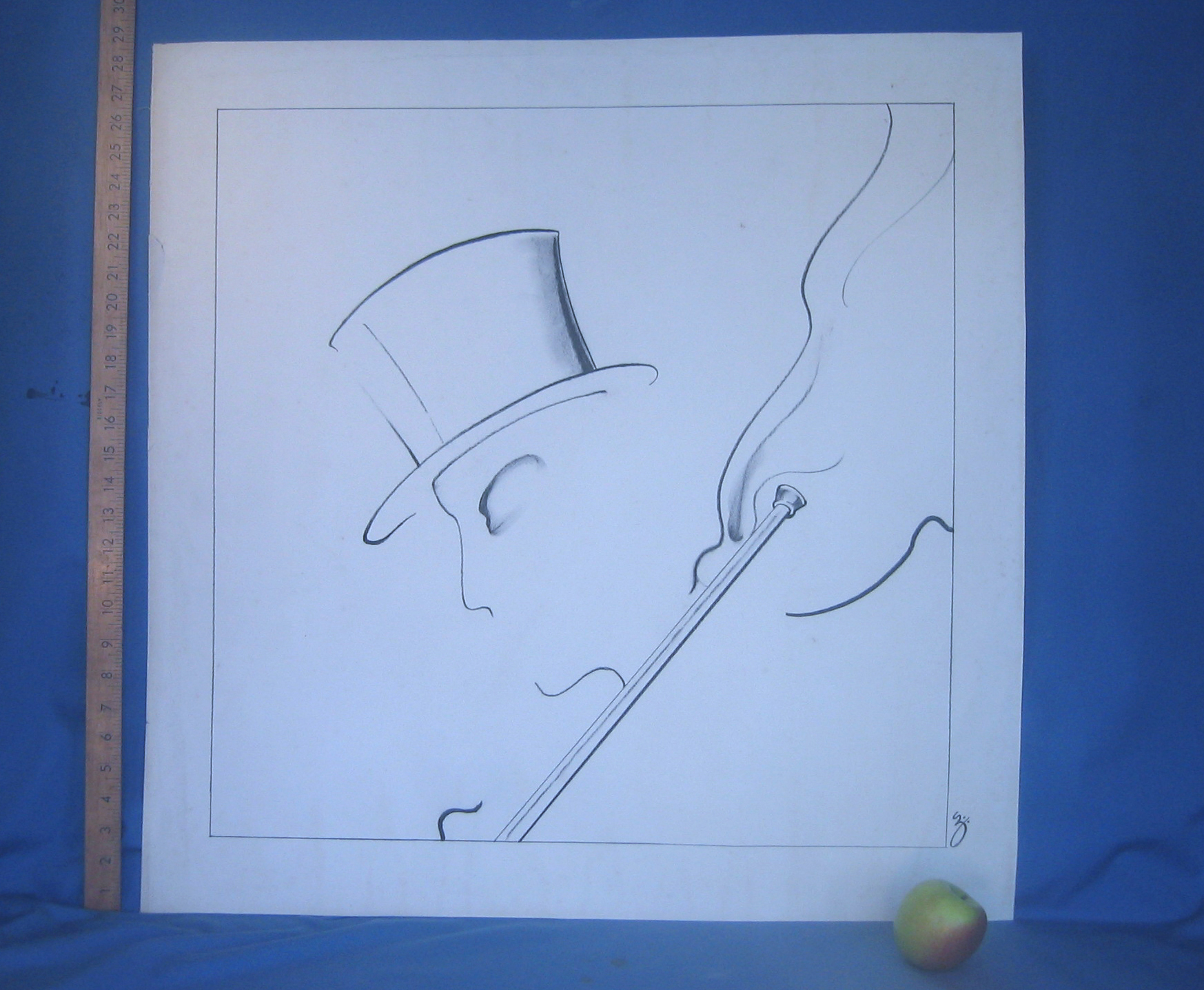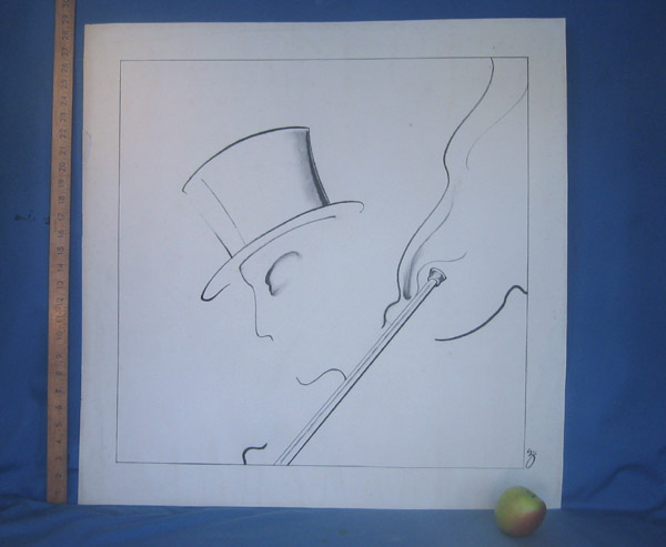 The dimensions of the picture, measured by Gary himself, are 730 x 725 mm. The artwork has been executed in charcoal on Rives BFK Elephant double weight paper. It has been fixed to prevent smudging.