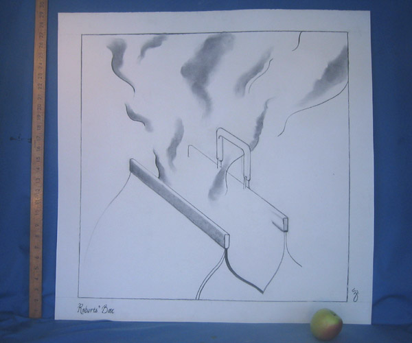 The dimensions of the picture, measured by Gary himself, are 740 x 750 mm. The artwork has been executed in charcoal on Rives BFK Elephant double weight paper. It has been fixed to prevent smudging.