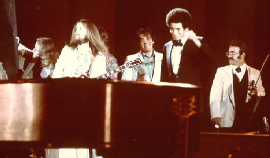 | Few would disagree that Mick Grabham had a fantastic night at the Hollywood Bowl: the well-known recording shows him on superb form ... indeed the smiling faces in all these photographs suggest that the band were well-aware how brilliantly it was all going. |