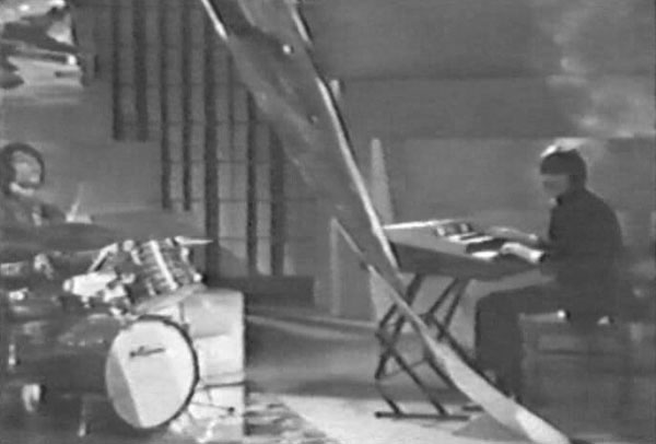 Drums and organ ... looks a bit as though the studio is falling down between them