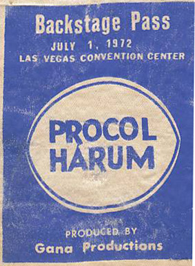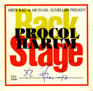 played by Procol in the USA, mostly: BtP's own pass issued at Hallowe'en gig