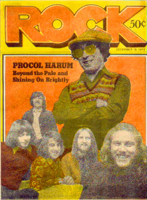 From Rock Magazine, December 1972 Keith Reid, superimposed yet towering over the rest of Procol Harum, seems to be the harbinger of things to come. The article is titled: 'Beyond the Pale and Shining On Brightly'. Even more eerie are the 3D-like specs that Keith is wearing, as if to imply that he could see into the future and envision BtP in its present glorious state. Thanks, Larry |