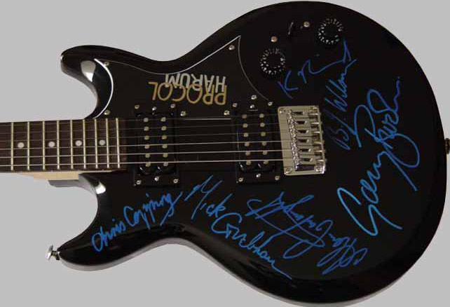 Guitar with oddly naff scratch-plate, but nice signatures of all six members of Procol's Grand Hotel line-up |