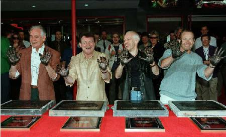 Gary Brooker, Jack Bruce, Peter Frampton and Simon Kirke get their hands muddy, making the impressions that are now seen at the Guitar Center.