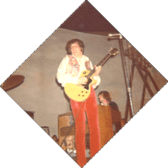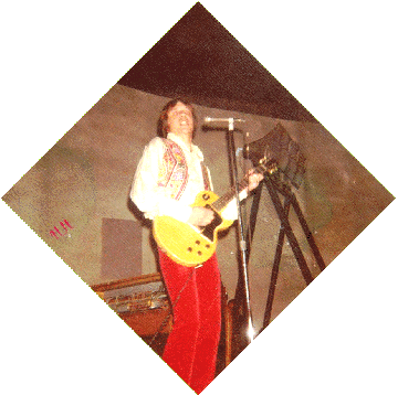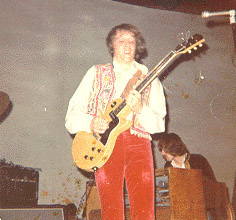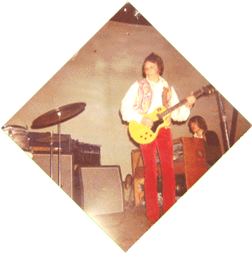 A very rare glimpse of Dave Knights, between the Commander and our beloved Octopus. Robin seems understandably reluctant to let go of his prize guitar: not so Dave his bass. | |||