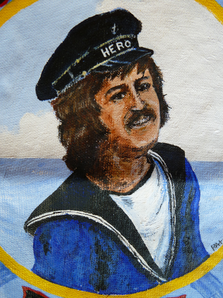We don't know who made this unique tee-shirt, but the name PAT is painted close to the sailor's left arm.