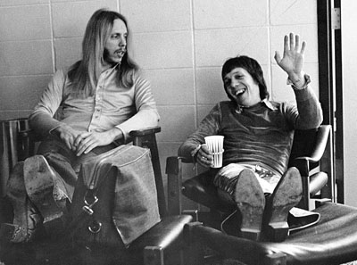 Andy Warhol, Robin Trower, Bill Lordan and James Dewar, in New York after Robin Trower concert |