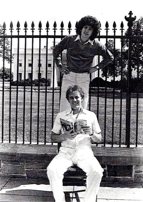 I started at Chrysalis Records in 1978. One of the first publicity projects I worked for – with a great deal of excitement and 'Is this really happening?' – was for Gary Brooker's solo LP No More Fear of Flying. Here's a shot of me and Gary which I staged, sitting and standing in front of The White House, no less! Look closely and you will see Gary reading National Geographic. What a classic moment! |