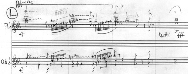 Finally a glimpse of the writing for flutes and oboes ... an intriguing view of the complexity of the parts, and an insight into the composer's attention to detail: he spent many weeks working on these unique sheets.