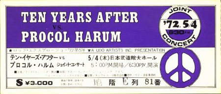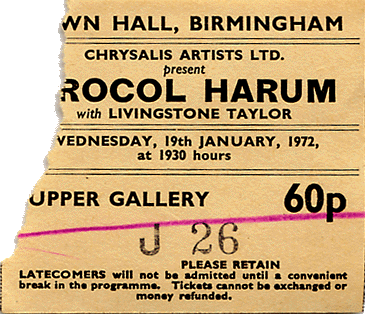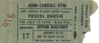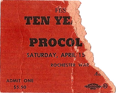 Our correspondent Frank Andolina remembered this concert as having taken place in 1971; Frans Steensma, however, offers the following correction: '15 April 1971 was a Thursday, not a Saturday; 15 April 1972 though was indeed a Saturday. Procol toured with Ten Years After in April 1972, but they played The Massey Hall in Toronto, Canada (support Cactus) on 15 April 1971'. |