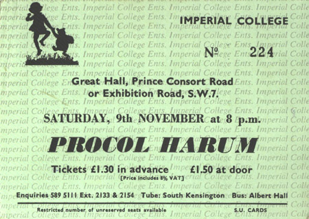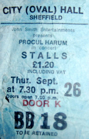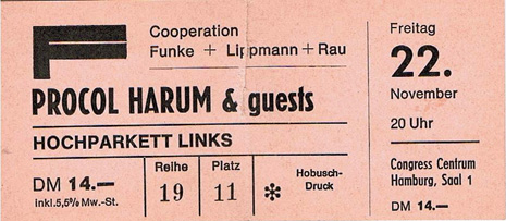 Hamburg, Germany. 'As far as I remember there were no guests, Procol doing a long concert with a break in the middle (Brooker, Grabham, Cartwright, Copping, Wilson) (thanks, Manfred) |