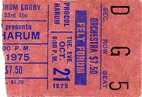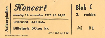 concert must have taken place in 1969 or 1975. Notice the spelling of 'Procal'! (thanks, Hans!) |