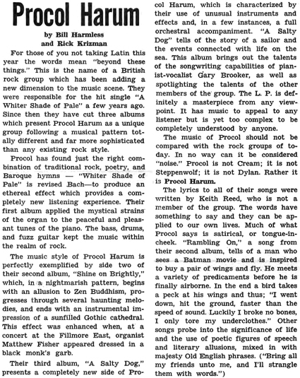 '... a Procol review I wrote for my high school newspaper in 1969, in Kansas City'