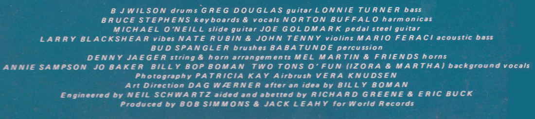included members of Procol Harum, Steve Miller Band and Stoneground. The album