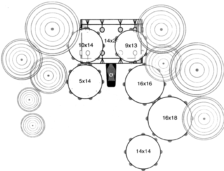Drummer and Procol fan Keith Necessary sends us (October 2004) the following fascinating analysis and probable chronology of BJ's drum set-up, based on photographic evidence: