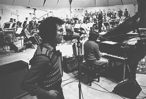 Group and orchestra: interesting to compare this with the album-sleeve |
